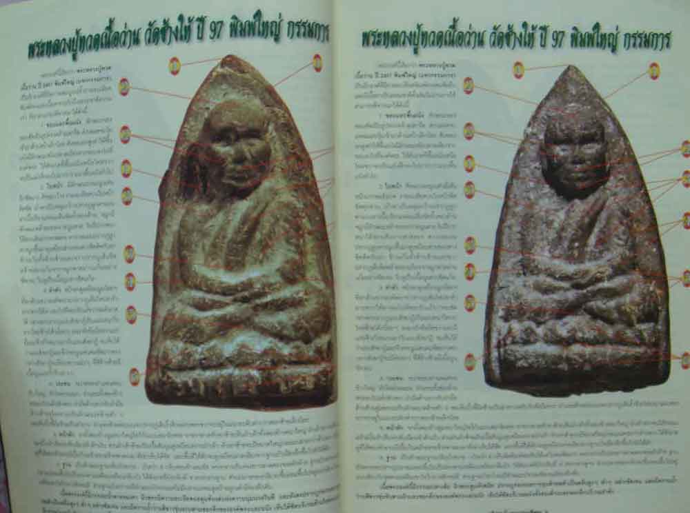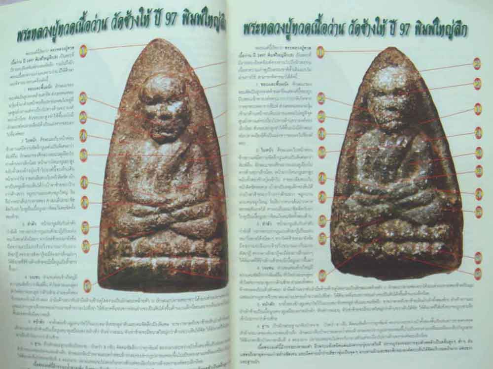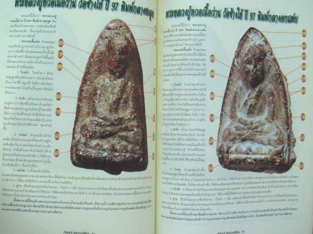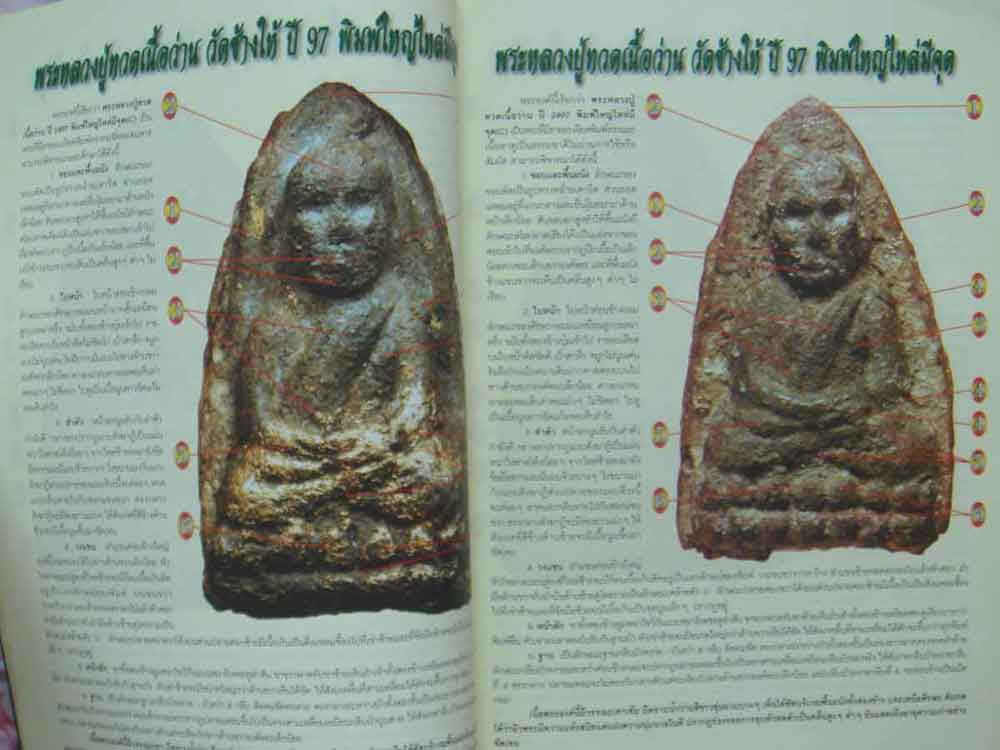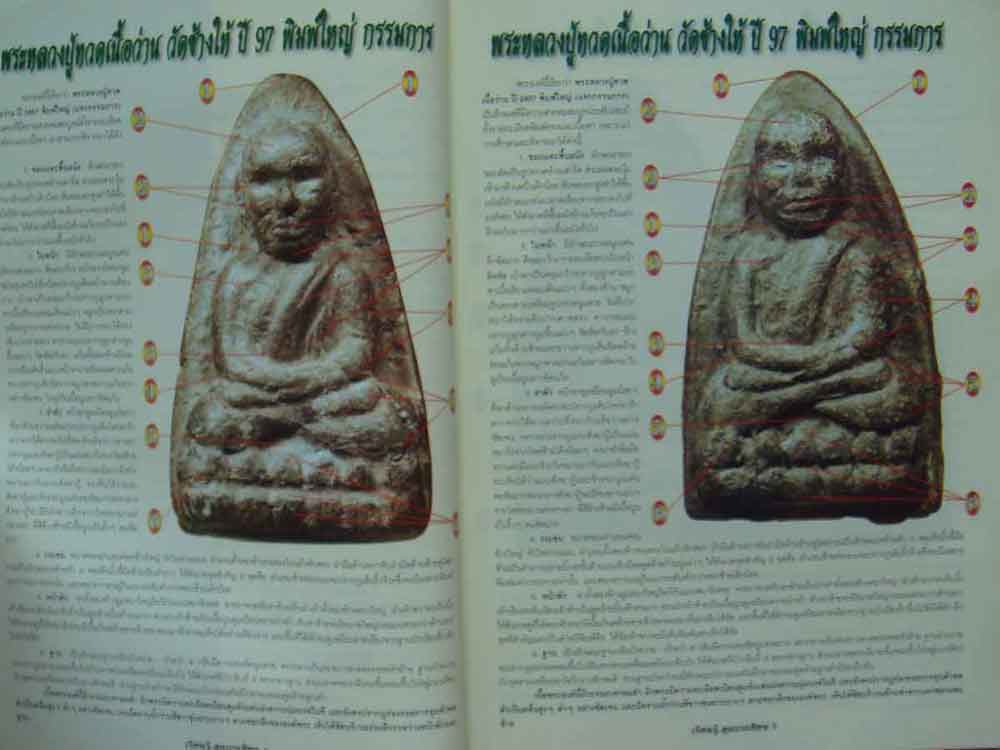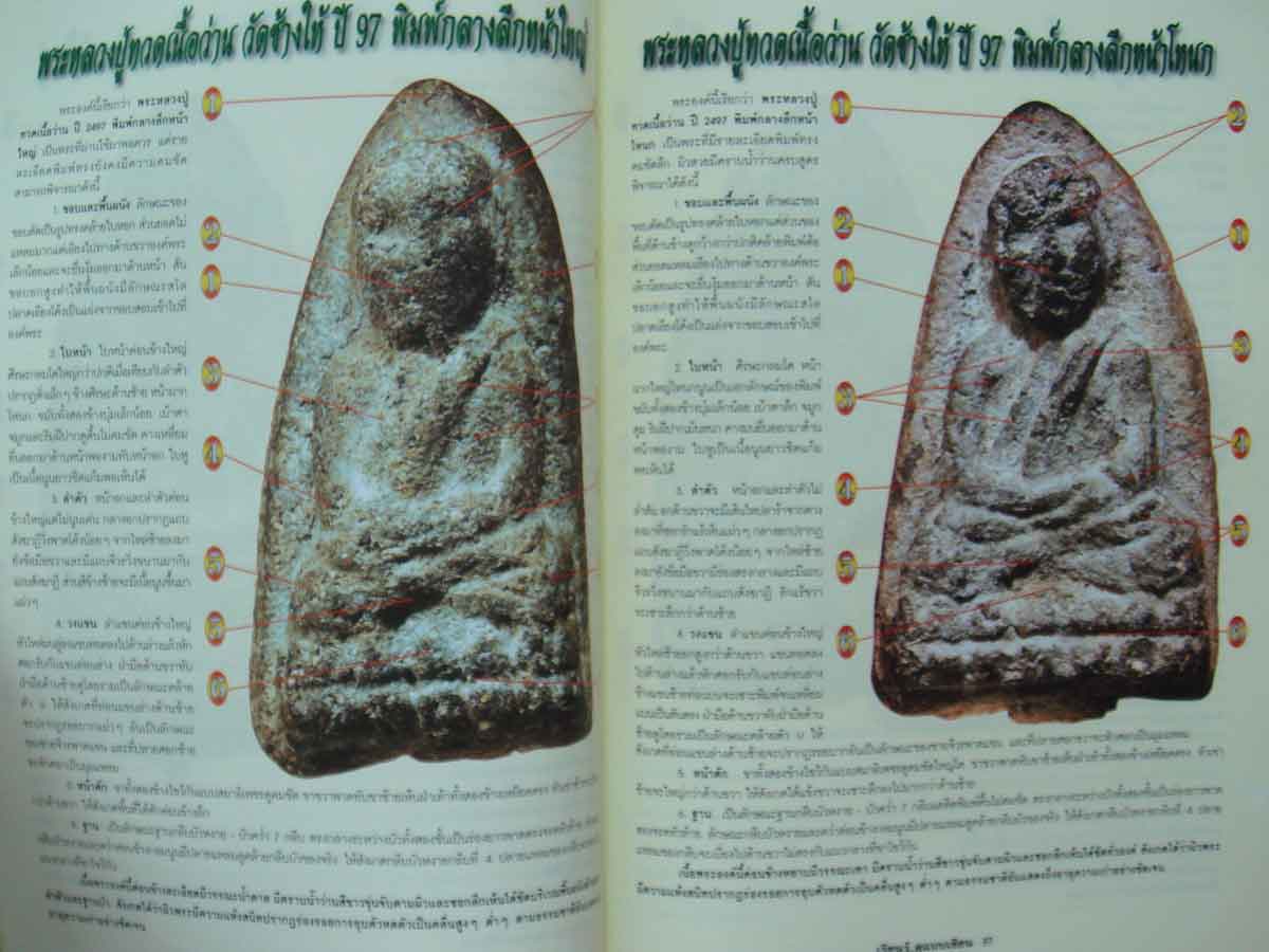 พระหลวงปู่ทวดเนื้อว่าน เป็นพระที่มีความแปรเปลี่ยนในเรื่องพิมพ์ทรงสูง เพราะแม่พิมพ์ของพระรุ่นนี้ เป็นเนื้อครั่ง จึงไม่คงทนเหมือนแม่พิมพ์ที่เป็นโลหะ ท่านจะเห็นว่าพระพิมพ์เดียวกัน แต่ตำหนิบางองค์ติดบางองค์ไม่ติด นั้นอาจเป็นเพราะ แม่พิมพ์อาจมีการแปรเปลียน มีการแต่งความเรียบร้อยของตัวแม่พิมพ์ที่อาจจะชำรุดเสียหายให้ดีข้น เพราะฉนั้นการพิจารณาหลวงปู่ทวด เนื้อว่าน ต้องพิจารณาจากพิมพ์พระ เนื้อพระ ธรรมชาติของพระ คือต้องพิจารณาทั้งหมด ทุกส่วนขององค์พระ จึงจะมีบทสรุปแท้-เก๊ ความหนา 120 หน้า กระดาษอย่างดี |