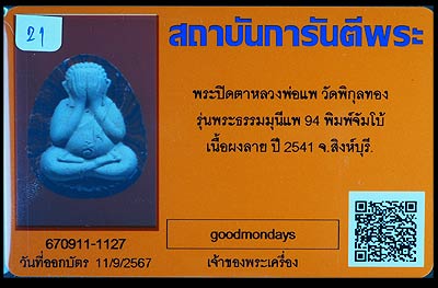 ปิดตาจัมโบ้ เนื้อลาย ปี2541 หลวงพ่อแพ วัดพิกุลทอง สิงห์บุรี