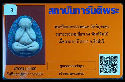 ปิดตาจัมโบ้ เนื้อลาย ปี2541 หลวงพ่อแพ วัดพิกุลทอง สิงห์บุรี