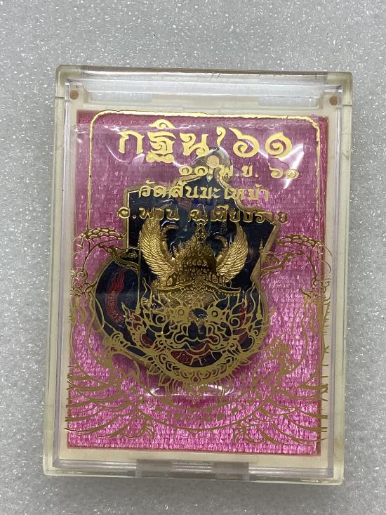 เหรียญพญาครุฑ ด้านหลังท้าวเวสสุวรรณ กฐินสามัคคีปี61 ครูบาวิรุต วัดสันมะเหม้า เนื้อทองแดงลงยา กล่องเดิม |