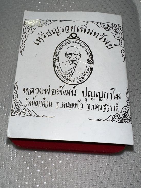 วัดใจแดงแรก เหรียญหลวงพ่อพัฒน์ วัดห้วยด้วน รุ่น รวยเพิ่มทรัพย์ เนื้อเงินลงยา หมายเลข54 สร้าง100เหรียญ มีประสบการณ์ สภาพสวยพึ่งแกะกล่องเดิมๆ (นน. 15กรัม) เงินขึ้นราคาไปถึงกรัมละ130บาท รับประกันตามกฏ (ราคาจอง2500บาท) |