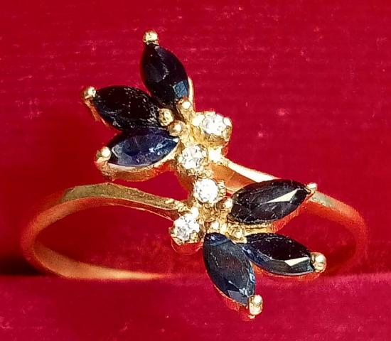 แหวนทองเหลือง ไพลิน ทรงดอกไม้สามกลีบไขว้ แถม แหวนงานจิวเวอร์รี่อีก 1 วง (รหัส 30076560.5)