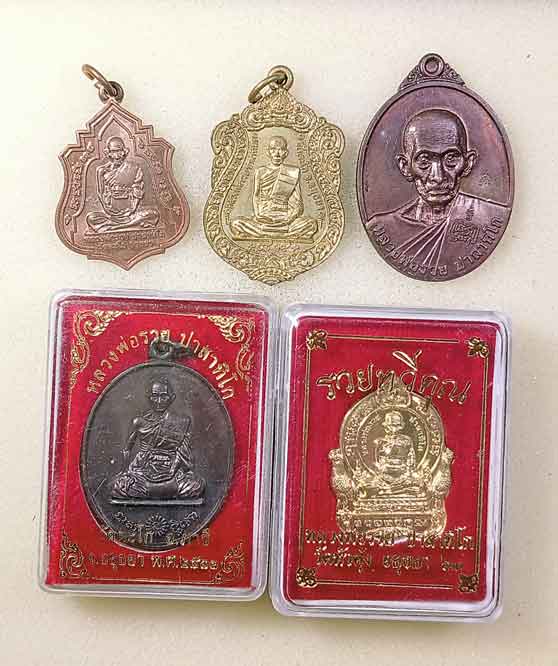 ชื่อพระเครื่อง เหรียญหลวงพ่อรวย วัดตะโก อยุธยา 5 เหรียญ