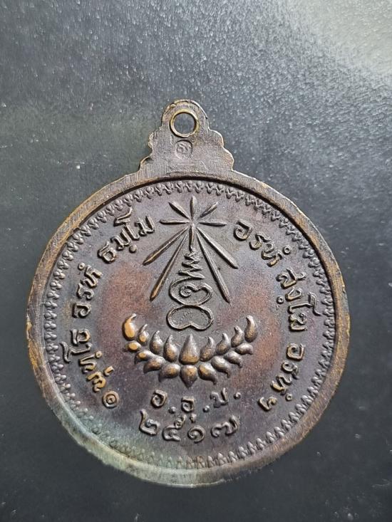 เหรียญมหามงคลหลวงปู่แหวน สุจิณโณ วัดดอยแม่ปั๋ง เชียงใหม่ เนื้อทองแดง ปี 2517 #องค์นี้มีตอกโค๊ตด้านหลังล่างหูห่วง