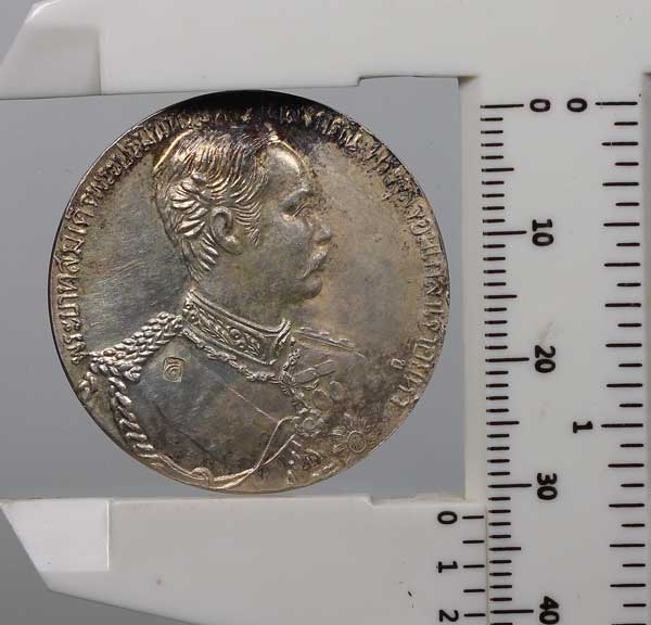 วัดใจ...เหรียญรัชกาลที่ 5 (สามสมเด็จ) รุ่น 90 ปี ร.พ.สมเด็จ ณ ศรีราชา จ.ชลบุรี ปี35 เนื้อเงิน (หนัก 15.81 กรัม)