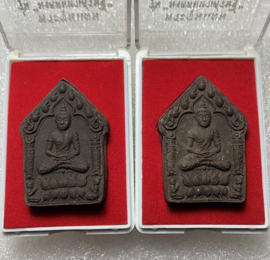 ด้านหน้าฝังหมุดเงิน และหมุดทองคำ , ด้านหลังฝังตระกรุดทองคำ หลวงปู่บัว ถามโก อธิษฐานจิตปลุกเสก ๑ ไตรมาส