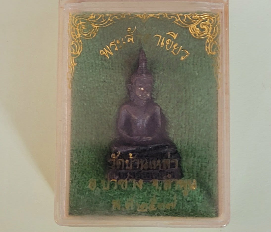 รูปหล่อพระเจ้าตาเขียว วัดบ้านเหล่าพระเจ้าตาเขียว อ.ป่าซาง ลำพูน โลหะรมดำปิดทอง 2537 ตอกโค๊ดที่ฐานพร้อมกล่องเดิม พระดีมีประสบการณ์พระคู่บ้านคูเมือง สวยๆ |