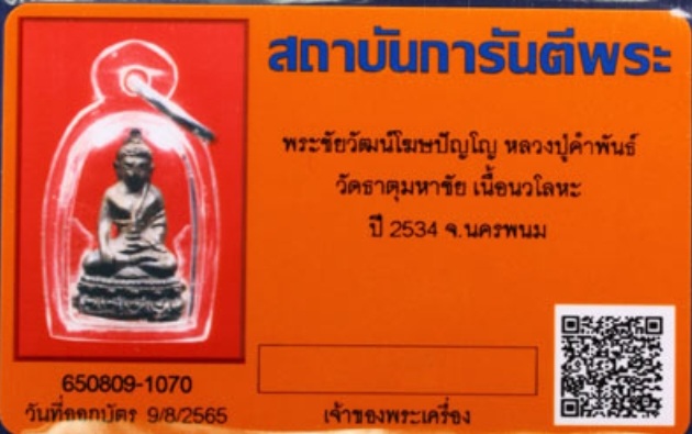 พระชัยวัฒน์โฆษปัญโญ หลวงปู่คำพันธ์ วัดธาตุมหาชัย เนื้อนวะ ปี2534 |