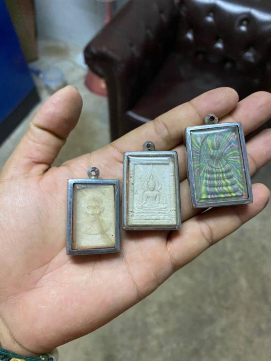 พระผงรูปเหมือนคละ 3 องค์พร้อมเลี่ยมขอบสแตนเลสไม่ทราบที่