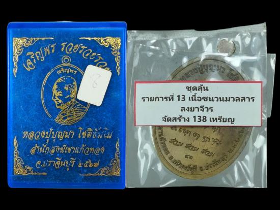 เหรียญเจริญพรบนหลวงพ่อบุญมา วัดเขาแก้วทอง ปราจีนบุรี เนื้อชนวนมวลสารลงยาจีวร สวยๆกล่องเดิม วัดใจ 100 แดงครับ