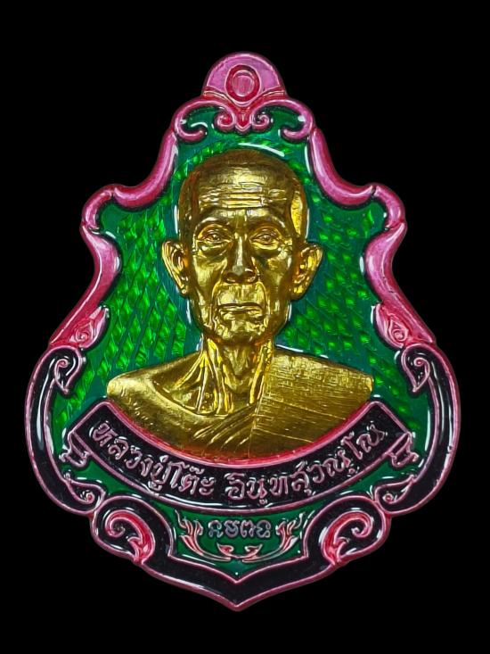 เหรียญหลวงปู่โต๊ะ วัดถ้ำสิงโตทอง ราชบุรี ปี 66 เนื้อมาโนชชมพู พื้นเขียวขอบดำโบว์ดำ หน้ากากทองระฆัง สวยๆกล่องเดิมวัดใจ 100 แดงครับ