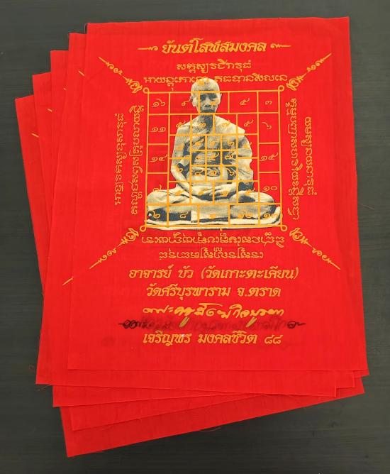 ผ้ายันต์โสฬสมงคล เจริญพร มงคลชีวิต 88 หลวงปู่บัว ถามโก ปี 2557 (5 ผืน)