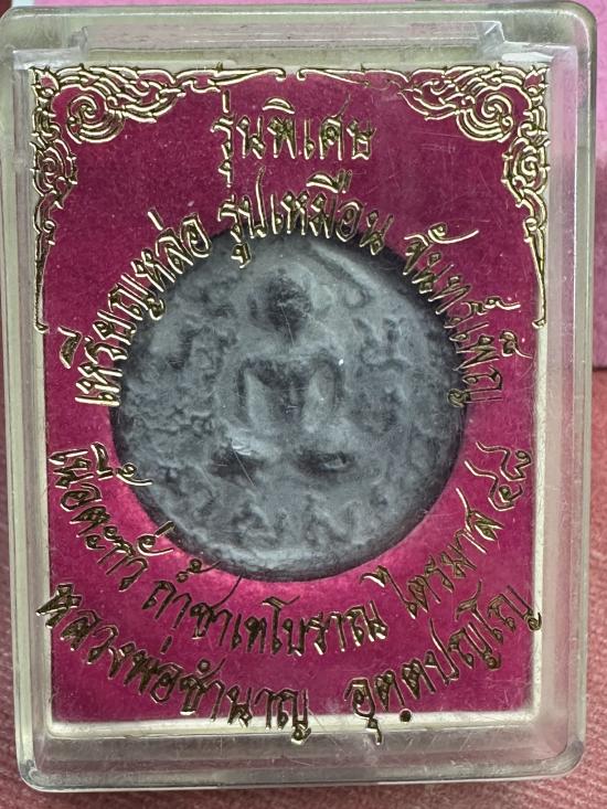 เหรียญหล่อรูปเหมือนจันทร์เพ็ญ เนื้อตะกั่วถ้ำชาเทโบราณ ไตรมาส48 หลวงพ่อชำนาญ วัดบางกุฎีทอง ปทุมธานี