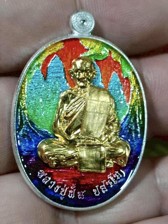 เหรียญหลวงปู่ฝั้น ปสาโท วัดศรีถมอรัตน์(หน้าผา) จ.เพชรบูรณ์ รุ่นเมตตา มหานิยม เนื้อชุบเงิน ลงยาเต็ม หน้ากากชุบทอง โค๊ต ตัวนะ หมายเลข 4 |