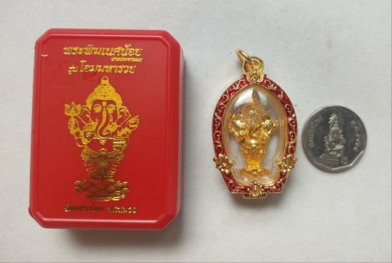 วัดใจเคาะเดียวแดงจ้า รูปหล่อพระพิคเณศ เนื้อนวะชุบทอง พร้อมตลับชุบทองลงยาแดง เลี่ยมกันน้ำ เคาะเดียวแดงจ้า |