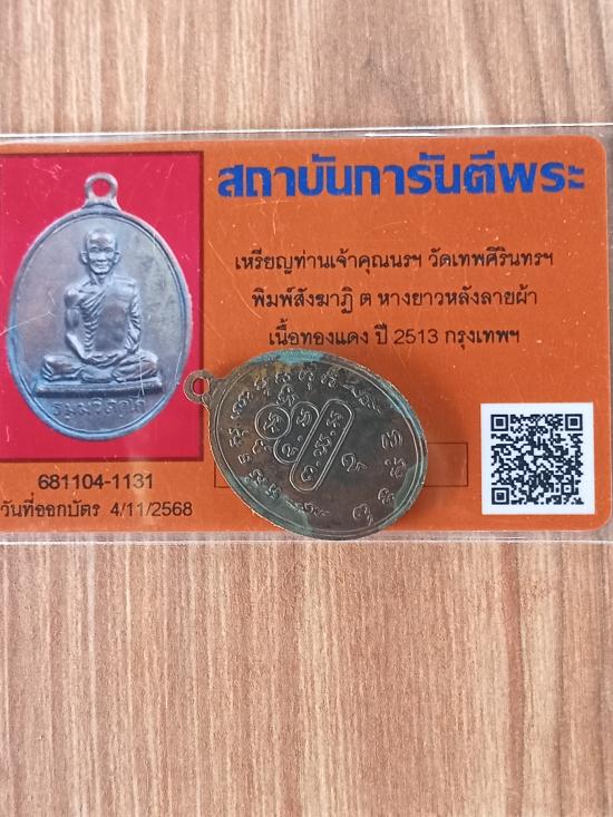 เคาะเดียวแดง++เหรียญท่านเจ้าคุณนรฯ วัดเทพศิรินทรฯ พิมพ์สังฆาฏิ ต หางยาวหลังลายผ้า เนื้อทองแดง ปี 2513 พร้อมบัตรรับรองพระแท้ครับ