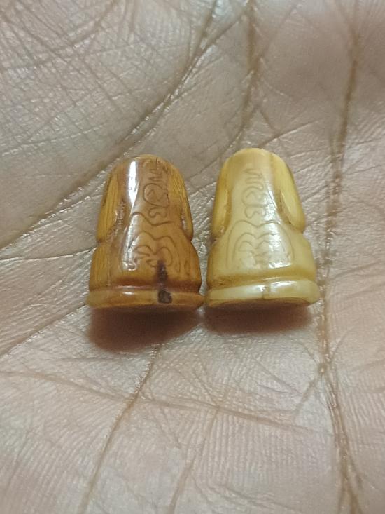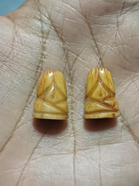ตะเวนเหมาพระบ้านมาครับ ไม่รู้ว่าเป็นงาหรือเป็นเขี้ยว มีจารทั้ง 2 องค์ ไม่ทราบที่ |