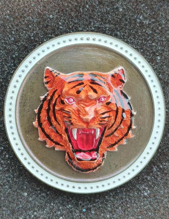 เหรียญ"พ่อปู่เสือ กาลสิทธิ์ฤๅษี"รุ่นแรกท่าสมอ หลวงพ่อเกาะ อาภากโร จ.ชัยนาท (ศิษย์สายตรงหลวงพ่อกวยวัดโฆษิตาราม) พิมพ์หน้าเสือ เนื้อนวะโลหะ หน้ากากเงินลงยาหน้าเสือ ลงยาขอบขาว หมายเลข ๕๖ พร้อมกล่อง |