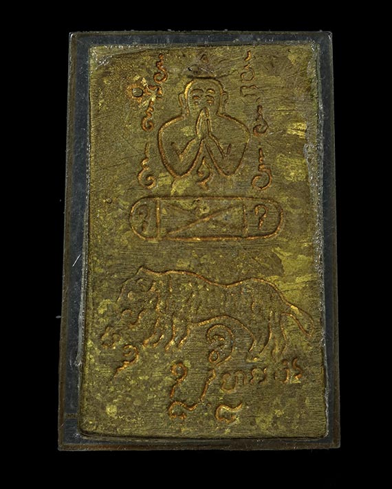 เหรียญหล่อหลวงพ่อคง วัดวังสรรพรส พิมพ์นั่งหลังเสือ เนื้อทองเหลือง ปี2532+บัตร