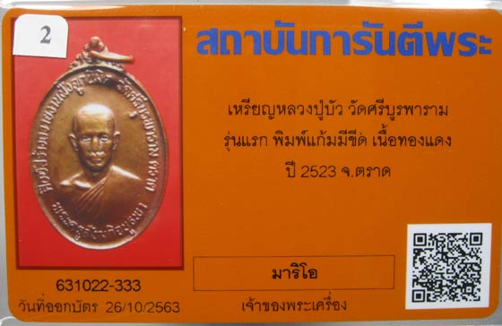 เหรียญรุ่นแรก หลวงปู่บัว วัดศรีบูรพาราม จ.ตราด ปี 2523 (พิมพ์แก้มขีด) เนื้อทองแดง