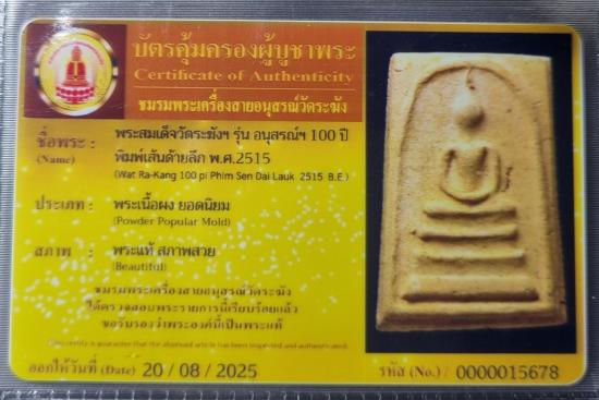 สมเด็จรุ่นอนุสรณ์ ๑๐๐ ปี วัดระฆัง พิมพ์เส้นด้ายลึก พ.ศ. 2515 นิยม ฟอร์มสวยมาก พร้อมบัตรรับรองพระแท้