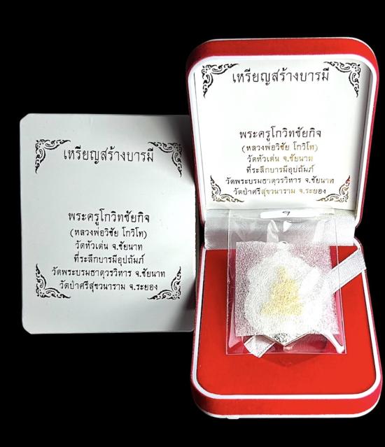 เหรียญเสมาสร้างบารมี หลวงพ่อวิชัย วัดหัวเด่น "เนื้อเงินหน้ากากทองคำ หมายเลข 9 มงคลของรุ่น
