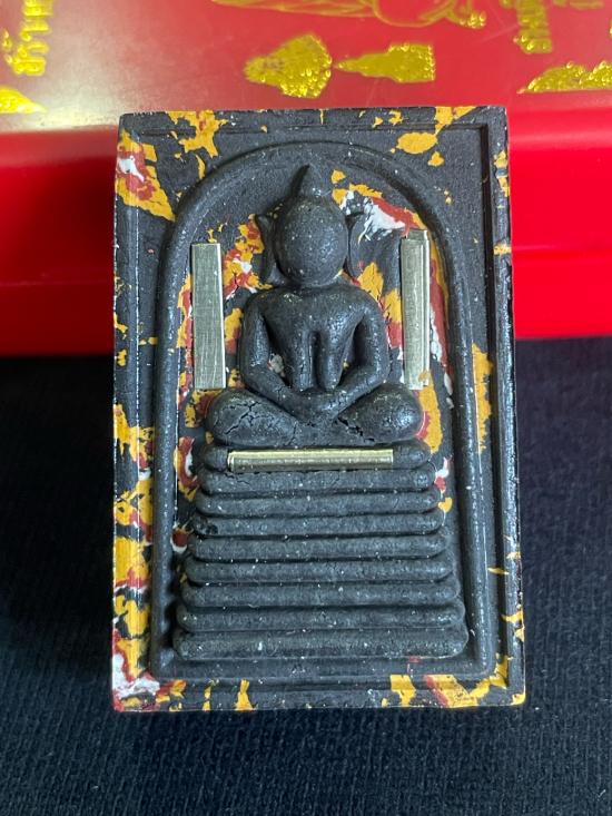 พระสมเด็จโต พรหมรังสี ออกที่วัดระฆัง รุ่นสร้างบารมีทวีทรัพย หลวงปู่ศิลา สิริจันโท อธิษฐานจิต เนื้อลายก้นหอย องค์ดำใบลาน ตระกรุดเงิน 3 ดอก ตอก ACI ตอกโค๊ดระฆัง เลข สองหลัก หมายเลข 85 พร้อมกล่อง