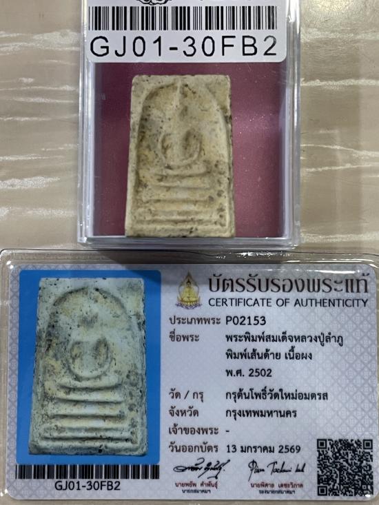 (เคาะแดง4900) +บัตรสมาคม สมเด็จพิมพ์เส้นด้าย หลวงปู่ลำภู กรุต้นโพธิ์