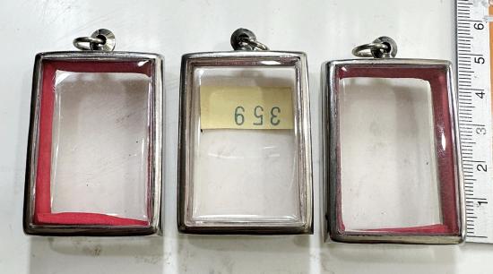 ตลับมือสองสแตนเลสทรงสี่เหลี่ยมใส่สมเด็จทั่วไปได้ 3 ใบแบบเปิดหน้า-หลังขนาด 4.5 x 3.5 ซม. |
