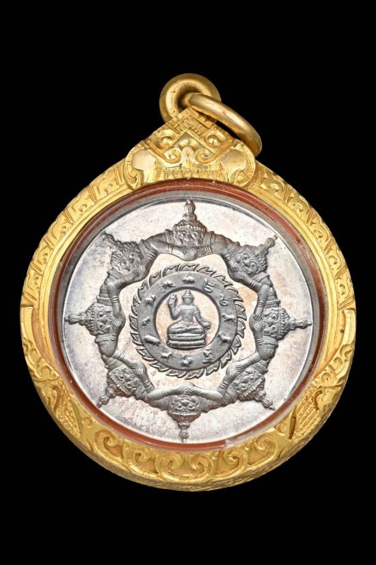 เหรียญจตุคามรามเทพ รุ่นบูรณะ เจดีย์ราย เนื้อเงิน ปี 2545 พิมพ์เล็ก 2.2 ซม. หายากมาก สวยแชมป์+เลี่ยมทองอย่างดี พร้อมบัตรรับรองครับ