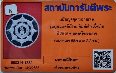 เหรียญอุดมโชค 8 อรหันต์ รุ่นบูรณะเจดีย์ราย ปี 45 เนื้อเงิน ขนาด 2.2 ซม. หมายเลข 68 สภาพเหรียญสวยมาก สุดยอดรุ่นประสบการณ์ น่าบูชา ขอได้ไหว้รับ องค์นี้สภาพสวยมาก เหรียญเล็กหายากสุด และเป็นเหรียญที่ได้รับความนิยมมากสุด เพราะมีขนาดกำลังน่าแขวน สายตรงไม่ควรพลาด พร้อมบัตรรับรองครับ