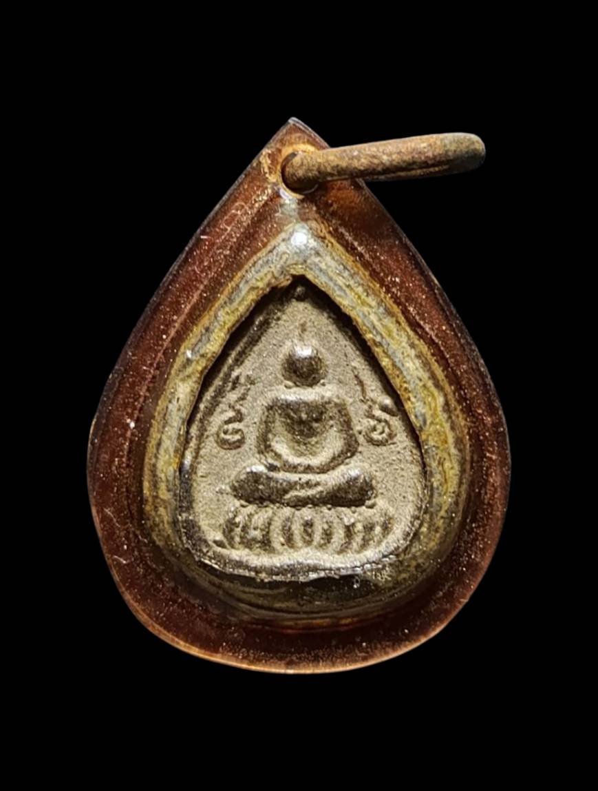 เหรียญหยดน้ำหลวปู่ศุข เลี่ยมกรอบสีน้ำตาล เคาะเดียว |