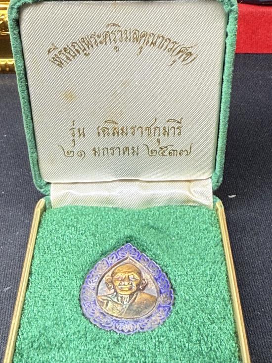 เหรียญหลวงปู่ศุข รุ่นเฉลิมราชกุมารี เนื้อเงิน หน้ากากทอง ลงยา ปี 2537 วัดปากคลองมะขามเฒ่า ชัยนาท พร้อมกล่องเดิม น้ำหนักเหรียญ 10.71 กรัม