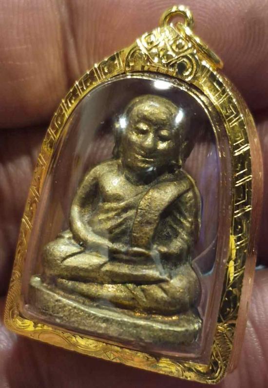 รูปเหมือนหลวงพ่อเงิน รุ่นช้างคู่ พิมพ์ใหญ่ เลี่ยมทองพร้อมบัตร |