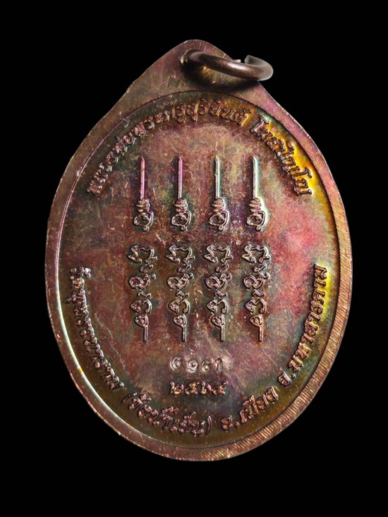 เหรียญ พลิกดวงเนื้อทองแดงผิวรุ้ง พระอาจารย์สุริยันต์ วัดป่าวังน้ำเย็น ปี 2564 หมายเลข 6961
