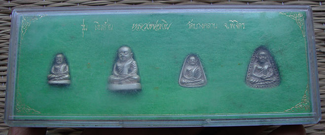 พระชุด 4 องค์ ไม่ทราบเนื้อ ตอกโค๊ต พร้อมกล่อง สวยครับ