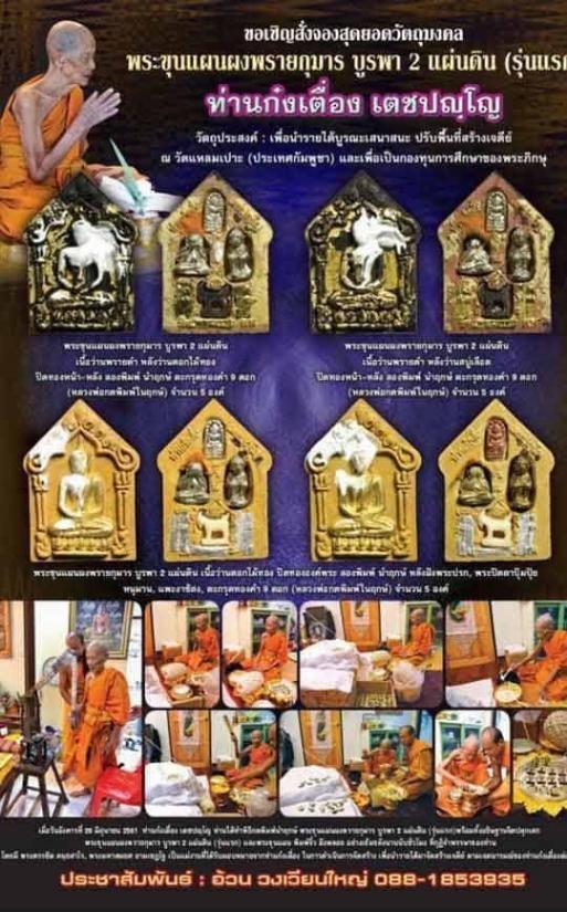 พระขุนแผนผงพรายกุมาร พิมพ์ใหญ่ บูรพา ๒ แผ่นดิน ท่านก๋งเตื่อง เตชปญฺโญ วัดคลองจาก ตราด ปี61 |
