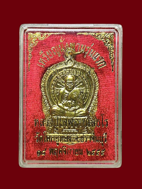 ***เหรียญนั่งพานรุ่นแรกหลังยันต์เกราะเพชร เนื้อทองฝาบาตร รุ่น รวยทันใจ (หมายเลข ๑๙๕๕) หลวงปู่โสฬส วัดโคกอู่ทอง จ.ปราจีนบุรี จำนวนการสร้าง 5,999 เหรียญ***