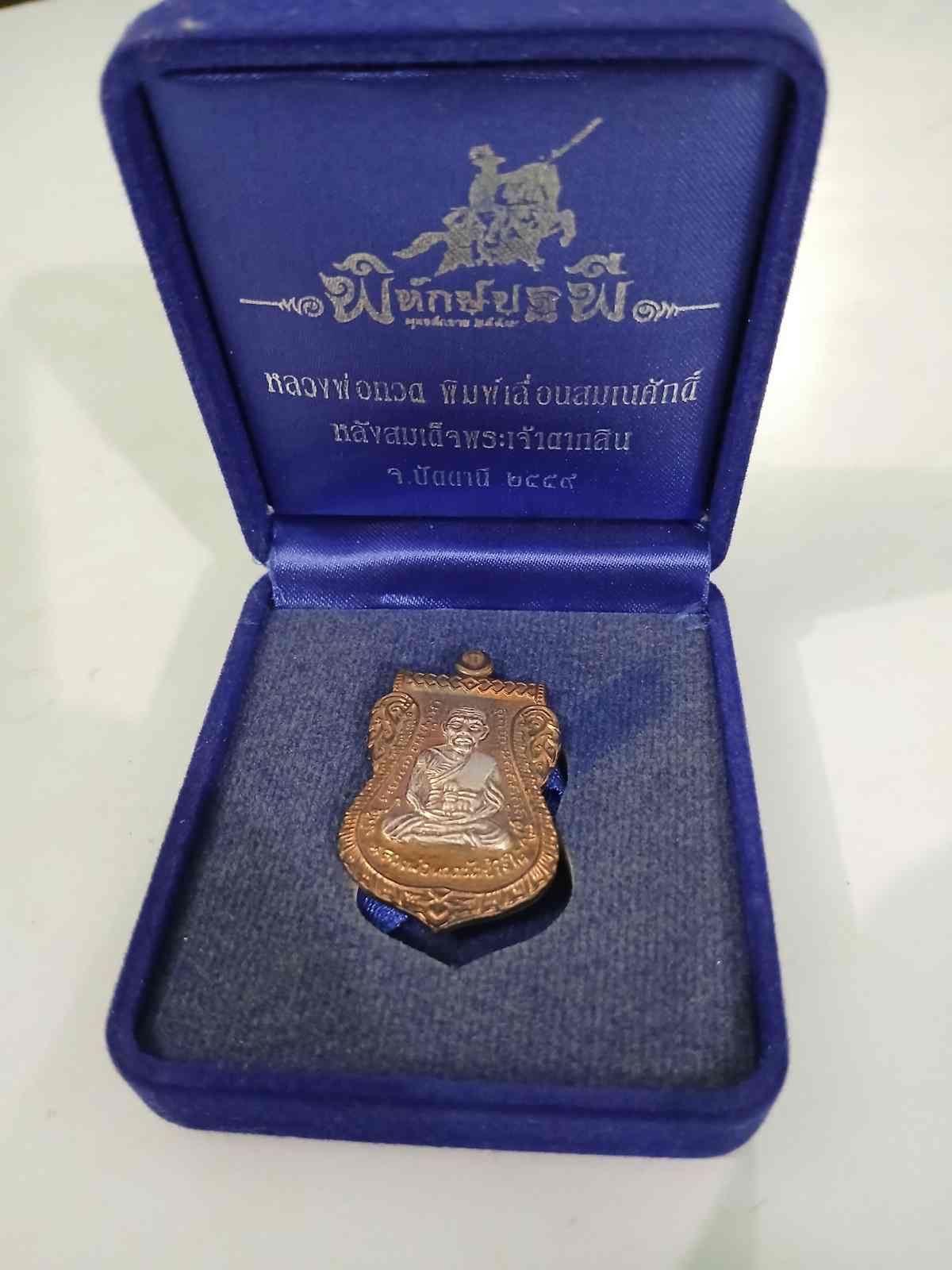 เหรียญปั๊ม หลวงพ่อทวด พิมพ์เสมาหน้าเลื่อน ปี 2559 หลังสมเด็จพระเจ้าตากสินมหาราช รุ่นพิทักษ์ปฐพีจัดให้เป็นเหรียญรุ่นแรกของวงการที่จัดสร้างเป็นหน้าเลื่อนหลังสมเด็จพระเจ้าตากสินมหาราช