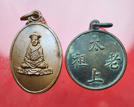 มาพร้อมเหรียญป้ายพระนามองค์ไท้เสียงเล่ากงหลังยันต์ป๊วยก่วยเนื้อทองแดงสวยเก่า เหรียญเก่ายุคก่อนปี 2500 ห่วงเชื่อม สวยเก่า ผิวหิ้งเดิมๆ