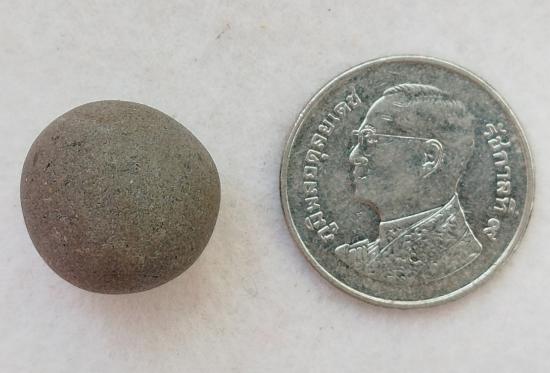ลูกอมสีเทา มีมวลสาร ขนาดตามภาพเทียบเหรียญบาท