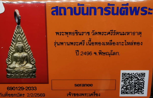 พระพุทธชินราช วัดพระศรีรัตนฯ รุ่นพานพระศรี เนื้อทองเหลืองกะไหล่ทอง ปี2496 จ.พิษณุโลก + บัตร G-pra สภาพเดิมค่ะ |