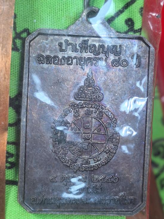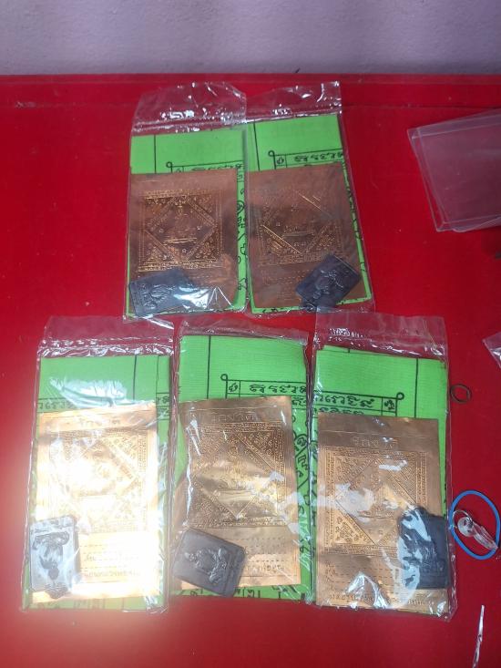 !!!!วัดใจ จำนวน 5 ผืน!!!!*ผ้ายันต์ ผ้าดิบ สีเขียว+แผ่นยันต์ทองแดงและเหรียญ สภาพสวย* (หลวงพ่อคูณ วัดบ้านไร่ ปี46 รุ่นรักชาติ หายาก) |