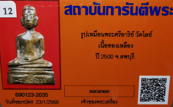พระกริ่งรูปเหมือนพระศรีอาริย์ วัดไลย์ รุ่นแรก เนื้อทองเหลือง กริ่งดัง ปี2500 จ.ลพบุรี + บัตรG-pra สภาพเดิมค่ะ สภาพตามรูปทุกประการค่ะ