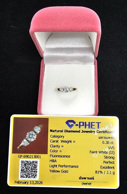 เคาะเดียววัดใจ แหวรทองฝังเพชร เพชร3เม็ดน้ำหนักรวม 0.36 กะรัต ไซส์แหวน 46 Yellow Gold 81% พร้อมบัตรรับรอง G-phet** |
