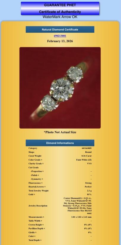 **พร้อมใบเซอร์จากสถาบัน G-phet** |