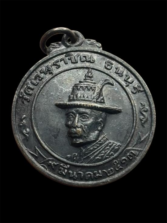 เหรียญพระเจ้าตากสินมหาราช วัดเวฬุราชิณ ธนบุรี เนื้อทองแดงรมดำ ปี 2513