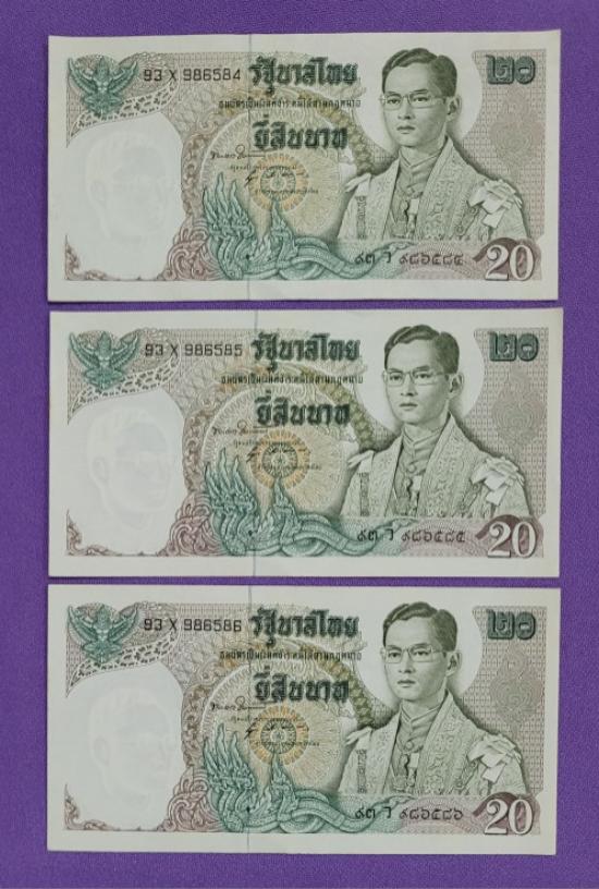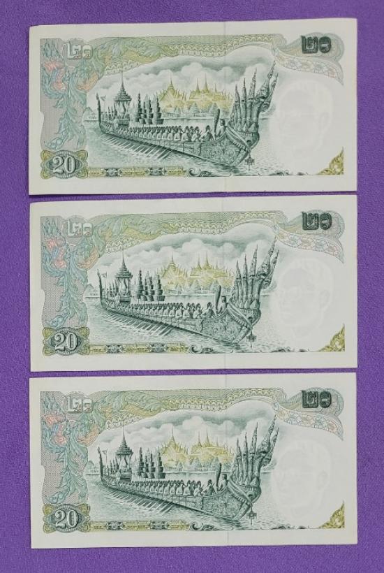 ธนบัตร 20 บาท หลัง เรืออนันตนาคราช 3 ฉบับ เลขเรียง |