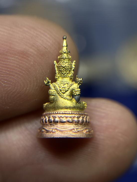พระพุทธมหามณีรัตนปฎิมากรจำลอง (พระแก้วมรกต) ทรงเครื่องฤดูร้อน เนื้อเงินพ่นทรายกะไหล่สามกษัตริย์ กรมสรรพสามิต ปี50 องค์เล็กฐานกว้าง1 เซน.สูง1.8 เซน. พิธีใหญ่ พระคณาจารย์ร่วม ๑๐๘