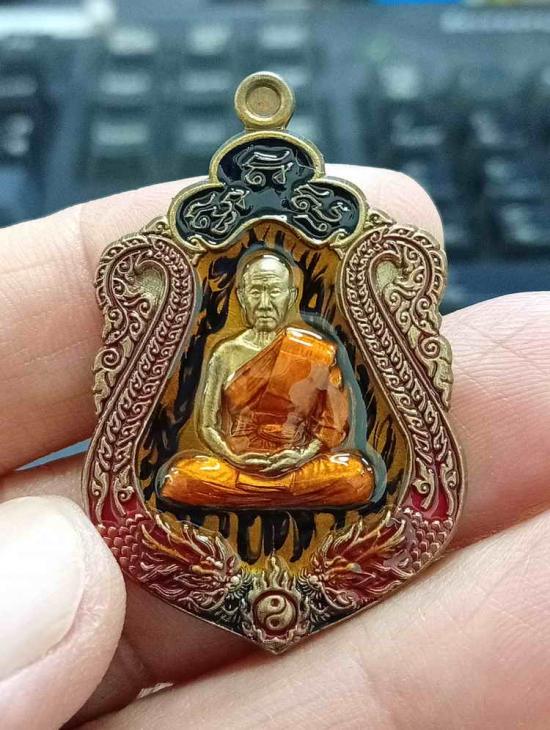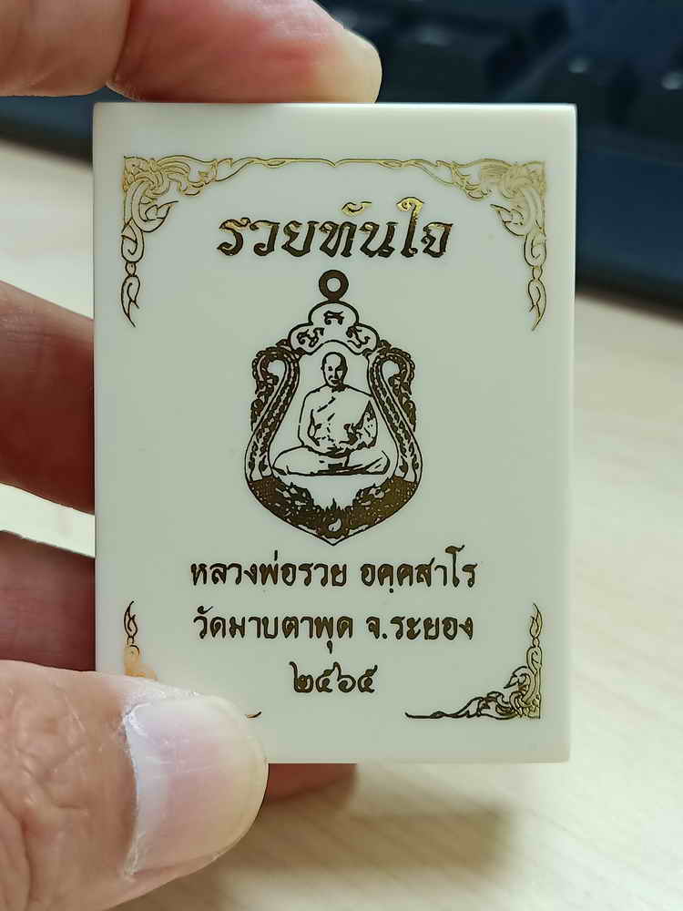 วัดใจ 100 เหรียญเสมารวยทันใจ หลวงพ่อรวย วัดมาบตาพุด จ.ระยอง ปี 25656 ชนวน ลงยาเหลืองดำ ขอบ จีวร หมายเลข 5 กล่องเดิม |